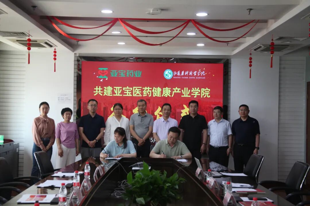 5月22日,亚宝药业集团与山西药科职业学院共建亚宝医药健康产业学院签约仪式在风陵渡举行。山西药科职业学院党委副书记、院长张轩萍,学院药学系书记白利勇,亚宝药业集团党委书记、监事会主席许振江,创新业务中心商业事业部总经理任晓东出席。双方相关负责人10余人参与并见证了本次签约仪式。
