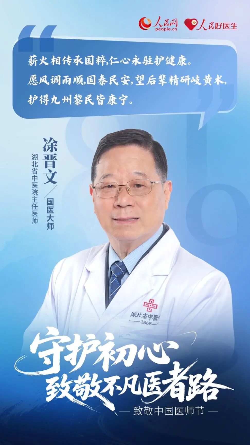 初心,如同暗夜中的第一盏灯,照亮了学医的漫漫长路,也奠定了日后面对生死、挑战极限、坚守职责的基石。又是一年杏林飘香时。今天迎来了第八个中国医师节,今年的节日主题是“德馨于行,技精于勤”。值此之际,人民网、人民好医生客户端特别推出“守护初心 致敬不凡医者路”策划,邀请14位院士与国医大师们分享心声,重温那份照亮生命的光辉初心,汲取力量,继续在守护人民健康的伟大征程上,书写属于中国医者的不凡篇章。